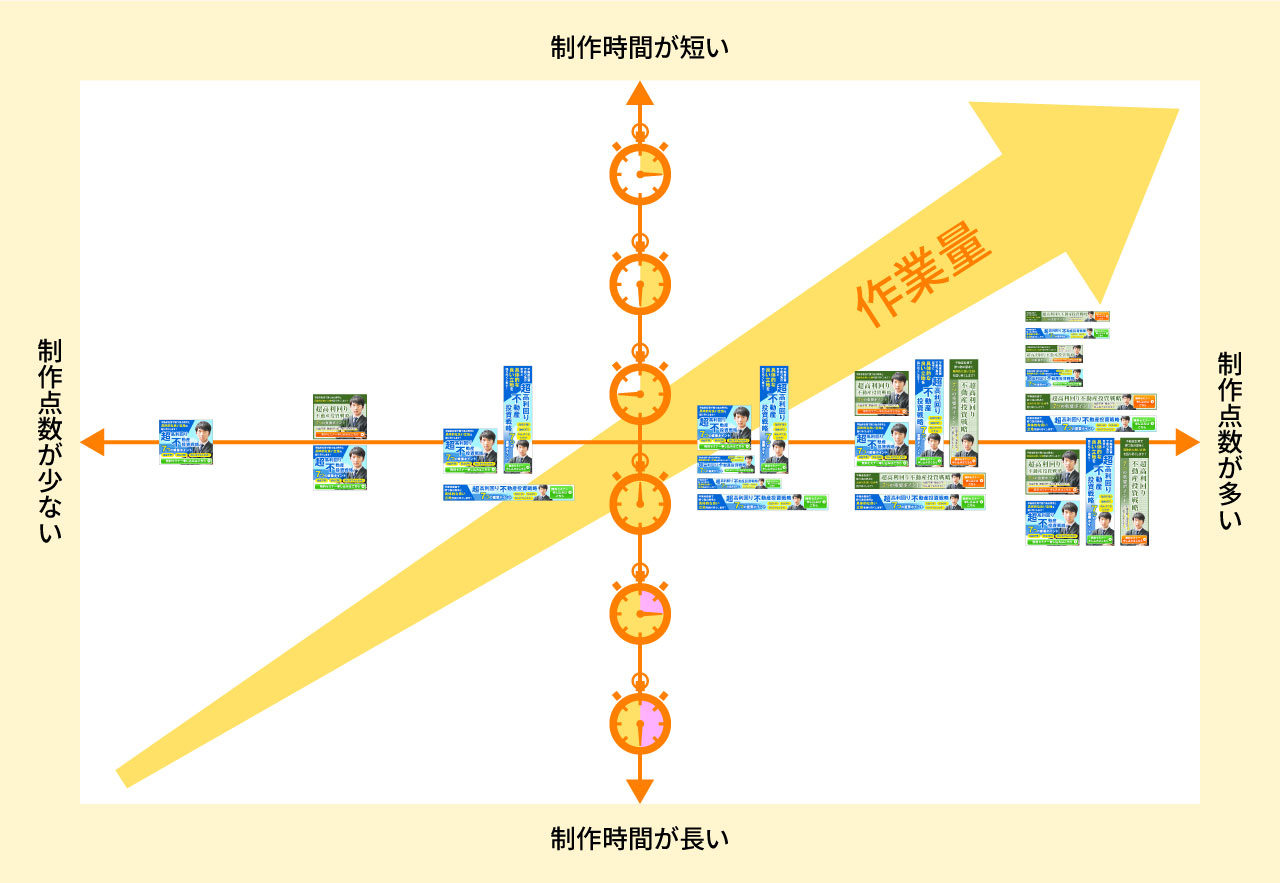 原稿の構成は変えずに色味と印象の違う2案をサイズ展開する