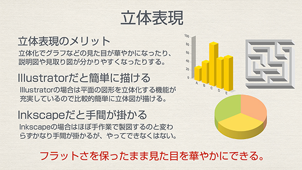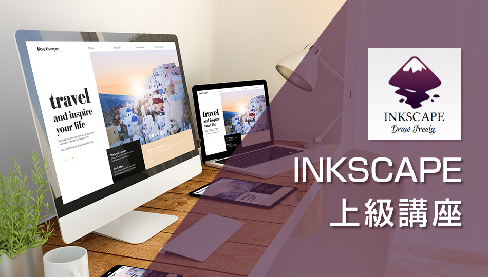 ロゴ制作をしながら、文字操作、図形操作、立体操作などInkscapeとIllustratorの基本操作を解説しています。