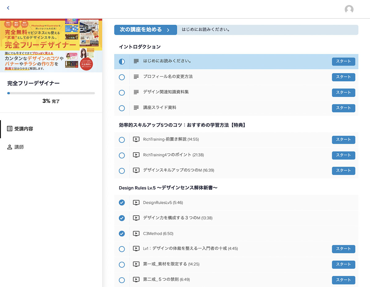 そこで本講座は参加者限定の会員ページを準備し、無期限でいつでも見たい時に見れるように全てのコンテンツを最初から公開しています。