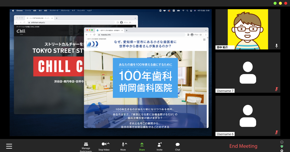 WEBデザイナー養成講座で行っている毎月のオンライン進捗報告会に参加することが可能です。Zoomで行っていますので、ぜひ毎月の進捗報告の場として参加いただければ幸いです。参加者同士でアドバイスをしあったり、僕や内藤さんがアドバイスさせていただきます。