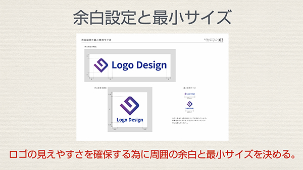 制作したロゴマークのマニュアルの作り方に提出フォーマットに触れながら、おさえるべきポイントについてわかりやすく図解を用いて解説しています。また作ったマニュアルをPDF化する実演動画も配布しています。