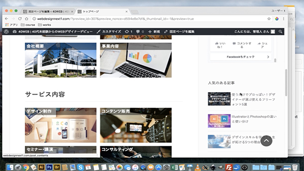 この講座ではWordPress基礎講座でインストールした環境をより実用的に使えるように、WEBサイトの作成基礎について解説しました。 WEBデザイナーが知っておくと役立つSEO対策の話やサイト分析・アクセス解析の解説など実際の画面に合わせて解説しています。